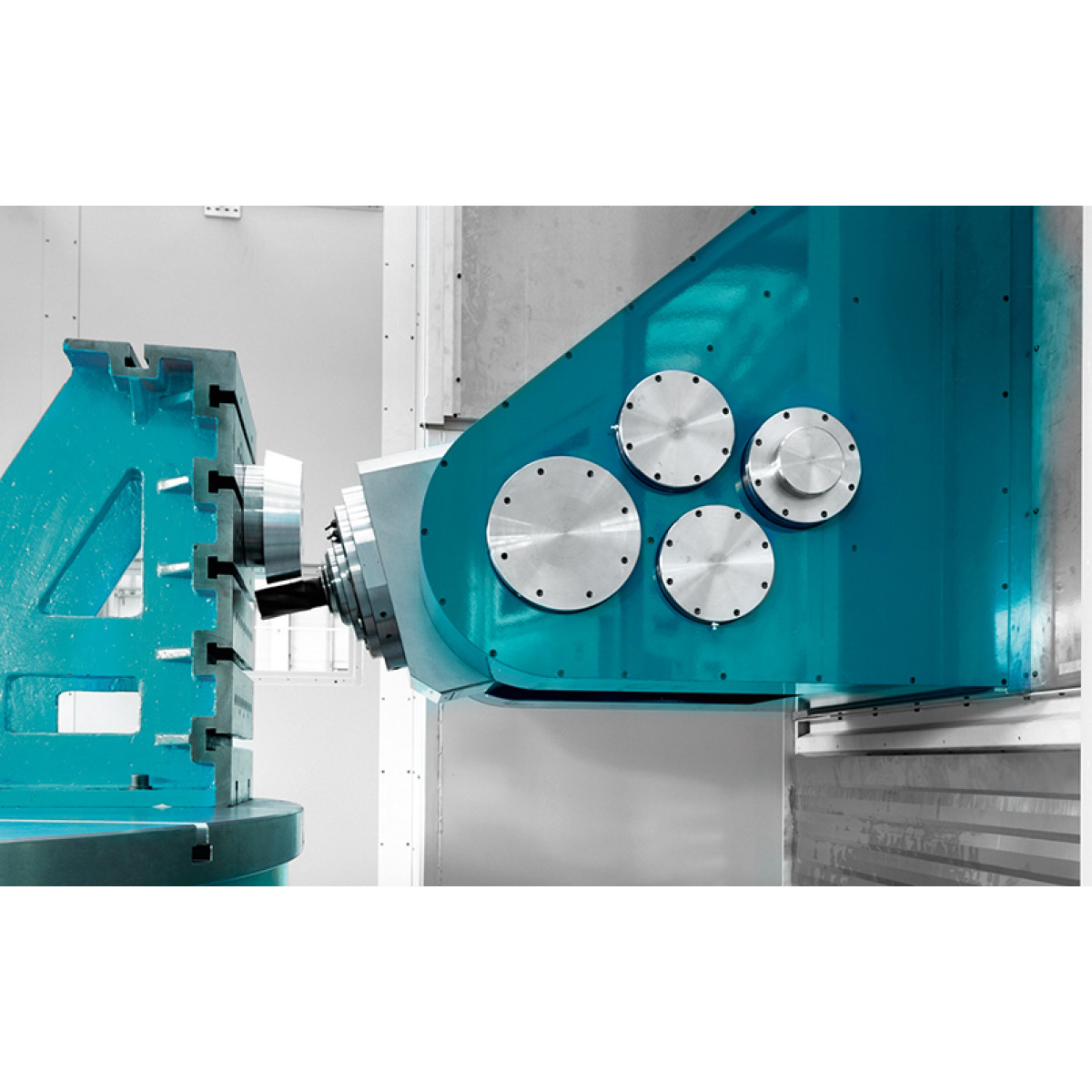 Дотримуючись традицій, PAMA оснастила фрезерні столи гідростатичними поворотними осями, завдяки чому досягається максимальна жорсткість і придушення вібрацій під час обробки.