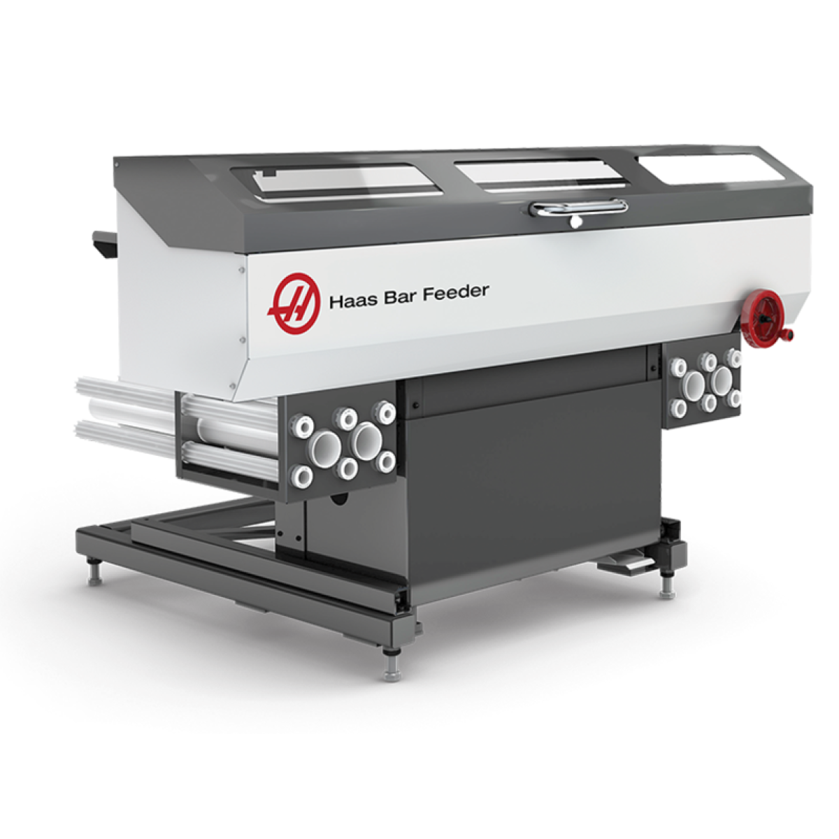 Подавач прутків Haas - це простий і доступний спосіб автоматизувати виробництво деталей на токарних центрах Haas для підвищення продуктивності. Він розроблений і виготовлений виключно для використання на токарних центрах Haas і підключається безпосередньо до системи керування Haas. Інноваційна відкидна конструкція забезпечує легкий доступ до задньої частини шпинделя токарного верстата для швидкої заміни адаптера та вкладишів шпинделя.