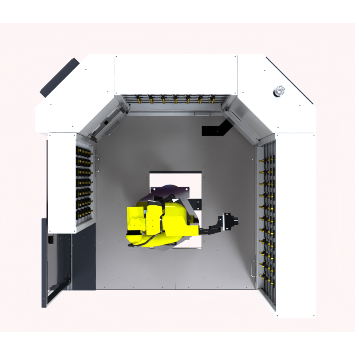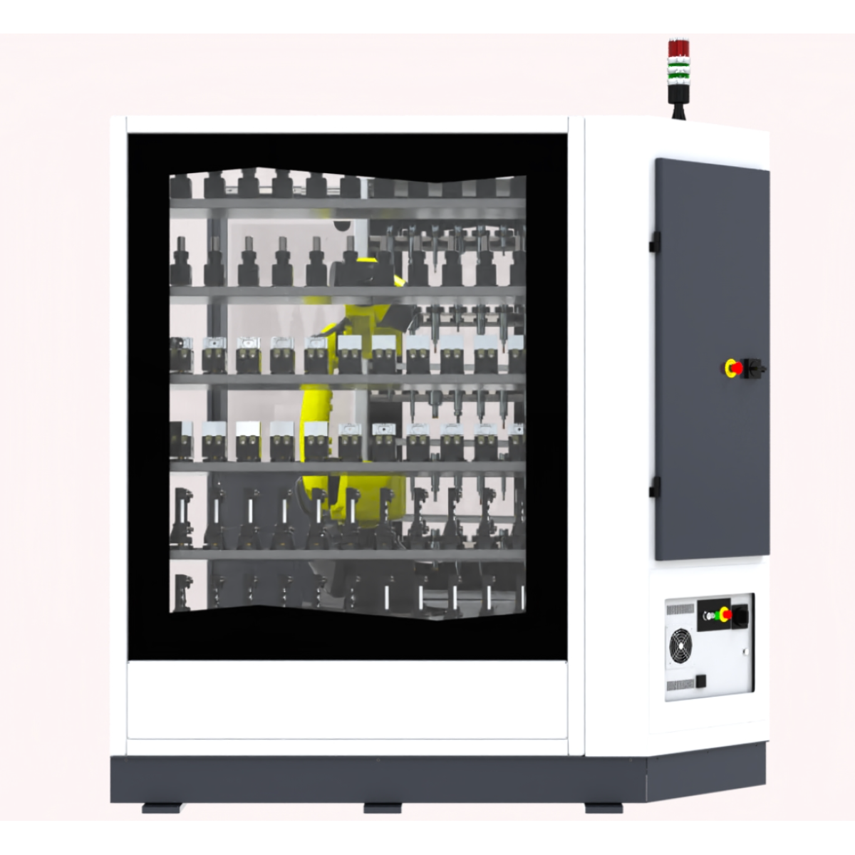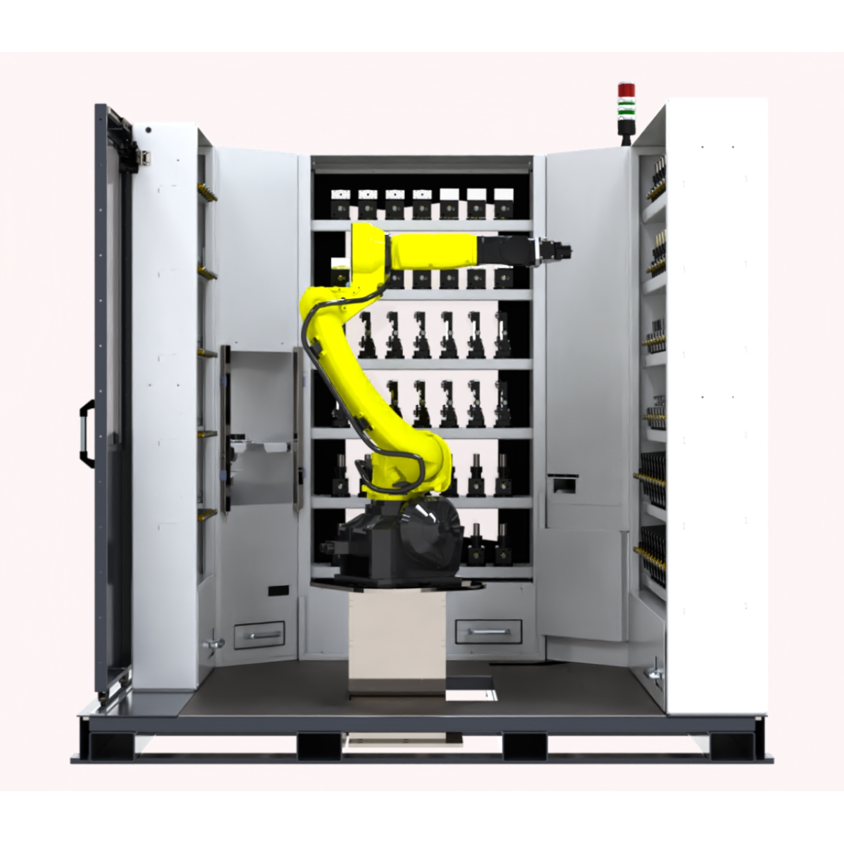 6-осевой промышленный робот с грузоподъемностью 7 кг, обеспечивает точное и быстрое перемещение деталей. Встроенные выдвижные ящики позволяют хранить обработанные и необработанные детали, обеспечивая длительную автономную работу без участия оператора. Интуитивно понятный сенсорный экран с возможностью быстрой перенастройки под новые детали.