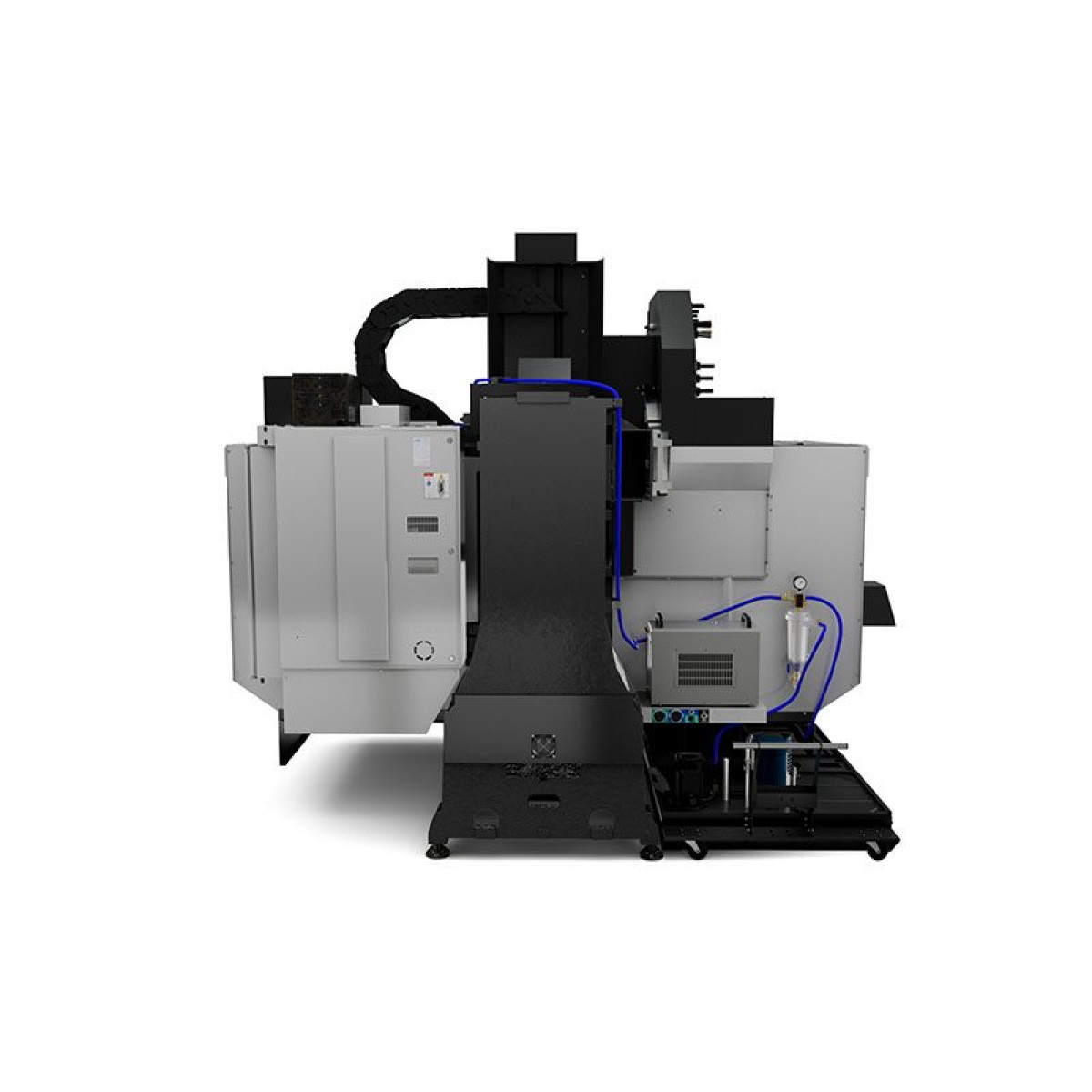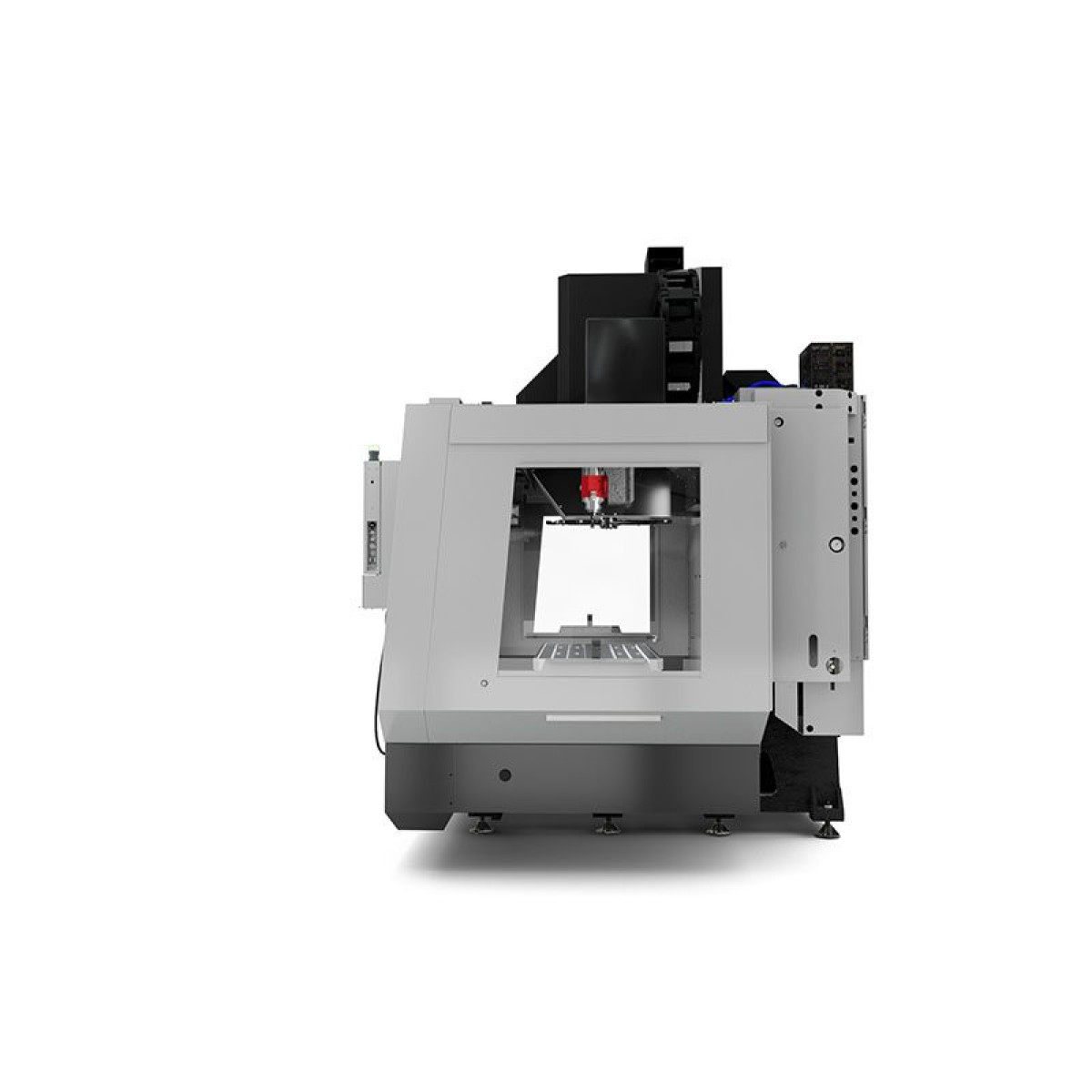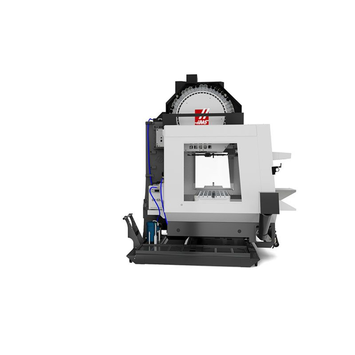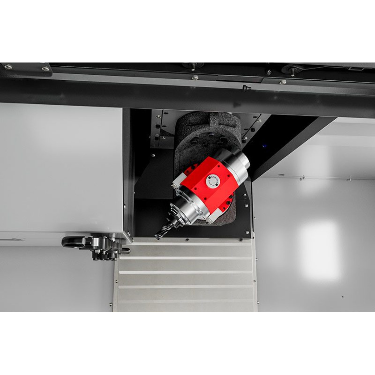 Стандартная комплектация включает шпиндель со встроенным двигателем со скоростью 24 000 об/мин, устройство для смены инструмента с боковым креплением на 50+1 инструмент, и стол с Т-образным пазом 54« x 24» (1372 x 610 мм), который обеспечивает удобную работу с длинными заготовками и креплениями. 2-координатная головка с шарнирным соединением обеспечивает ±245 градусов поворота по оси С и ±120 градусов наклона по оси В, что обеспечивает доступ практически к любому углу для обработки сложных форм, подрезов и 5-сторонней обработки, а тормоза на осях В и С обеспечивают достаточную жесткость обработки по схеме 3 + 2.
